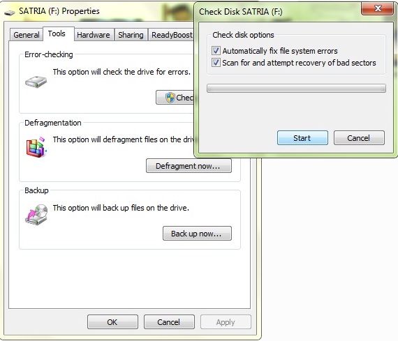 dan klik start, tunggu sampai proses selesai (Disk Check
